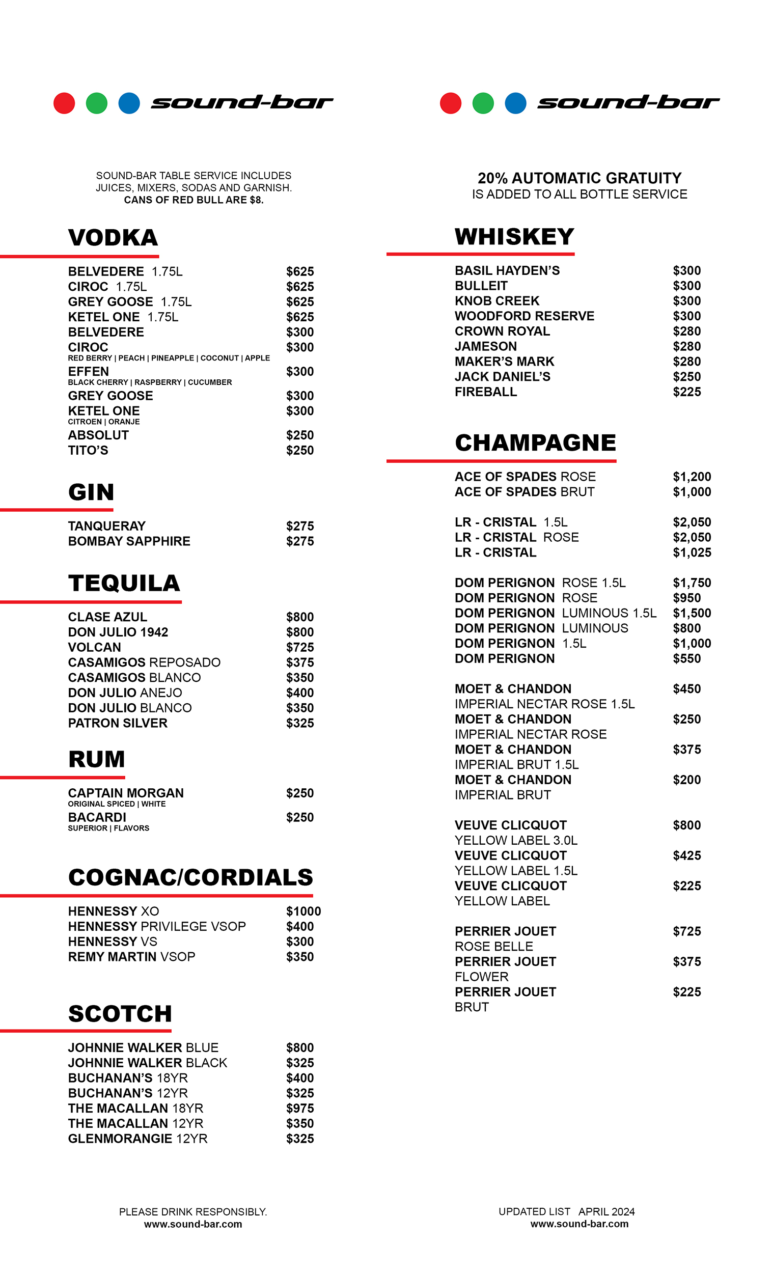 Sound-Bar is also the ideal location for any private function or public gathering. 4,000 square foot dance floor, 9 bars, 4 boutique lounges on 2 levels, and an exclusive VIP Room! Each unique area can be rented out individually as well. Complete with floor to ceiling video projection walls that enable our clients to project audio-visual presentation throughout the club.