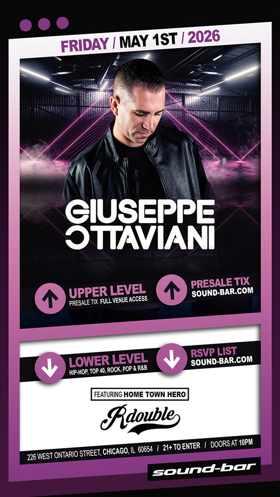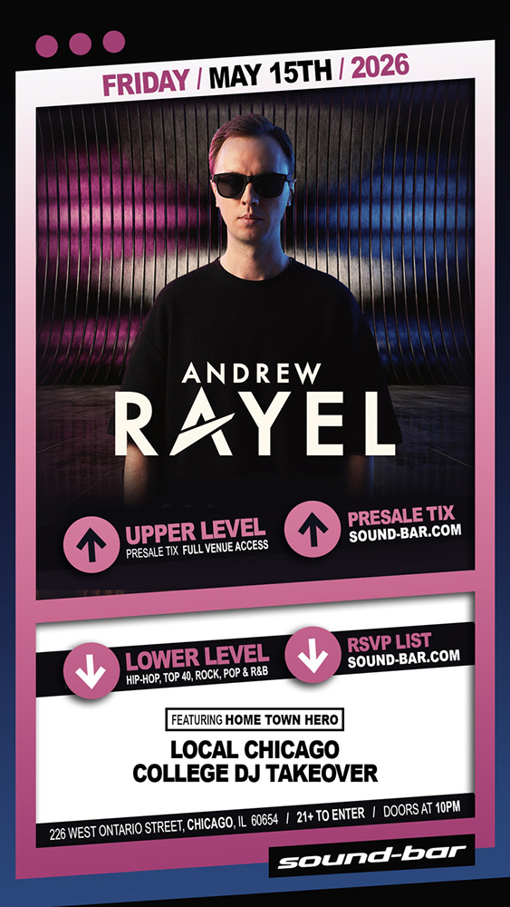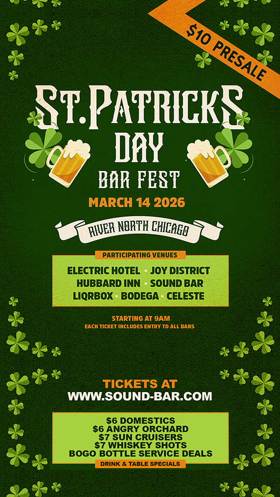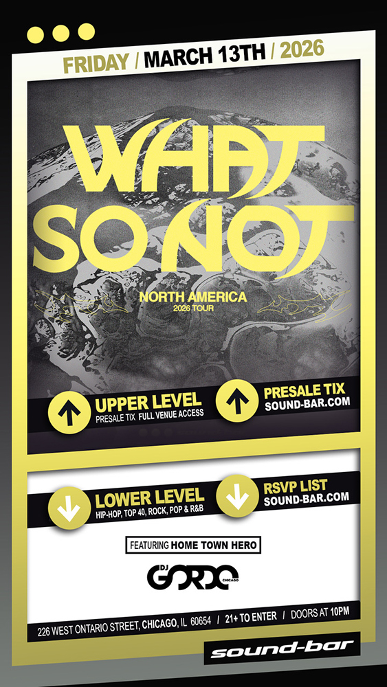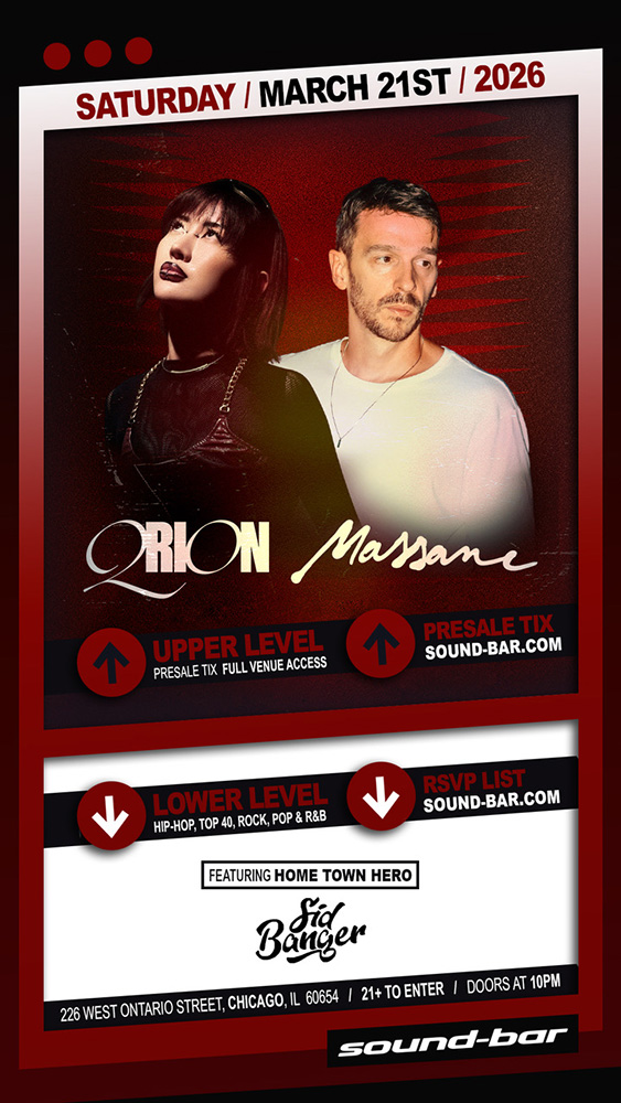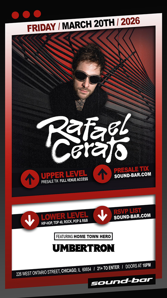 Sound-Bar is the hottest, upscale nightclub that revolutionizes Chicago nightlife by boasting style, luxury and state-of-the-art technology. Showcasing 20,000 square feet of pure bliss, a European minimalist decor, along with flat screen monitors, laser lights and new sound components. And the event calendar is like no other, featuring the world’s top DJ talent all year long!