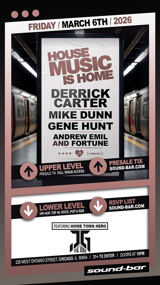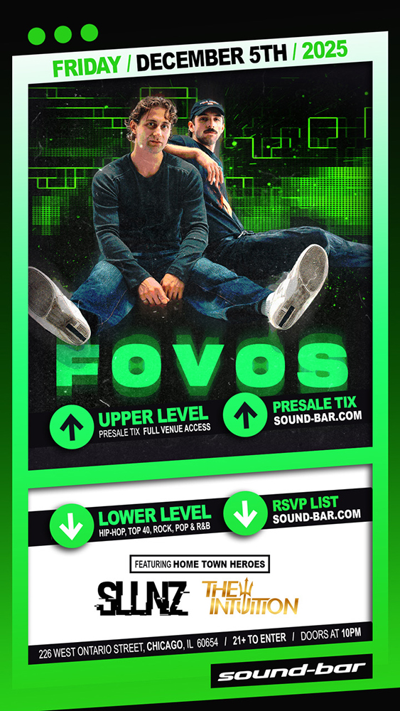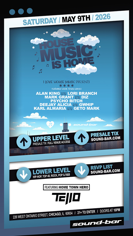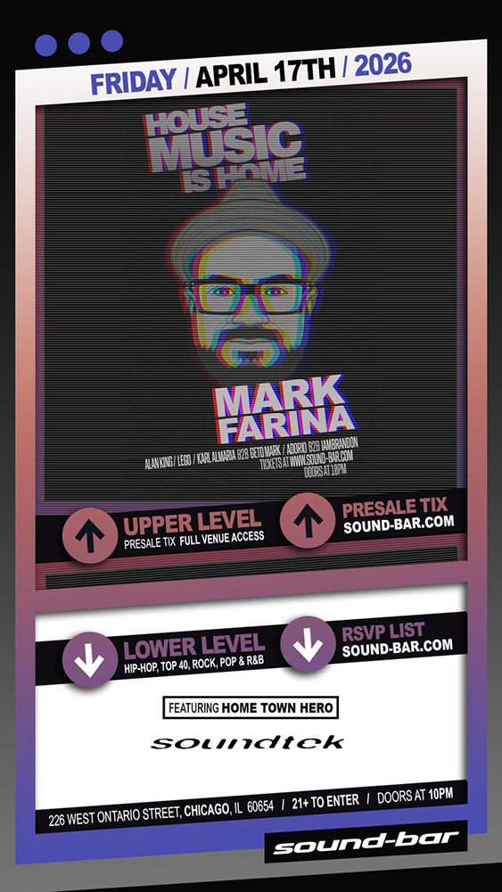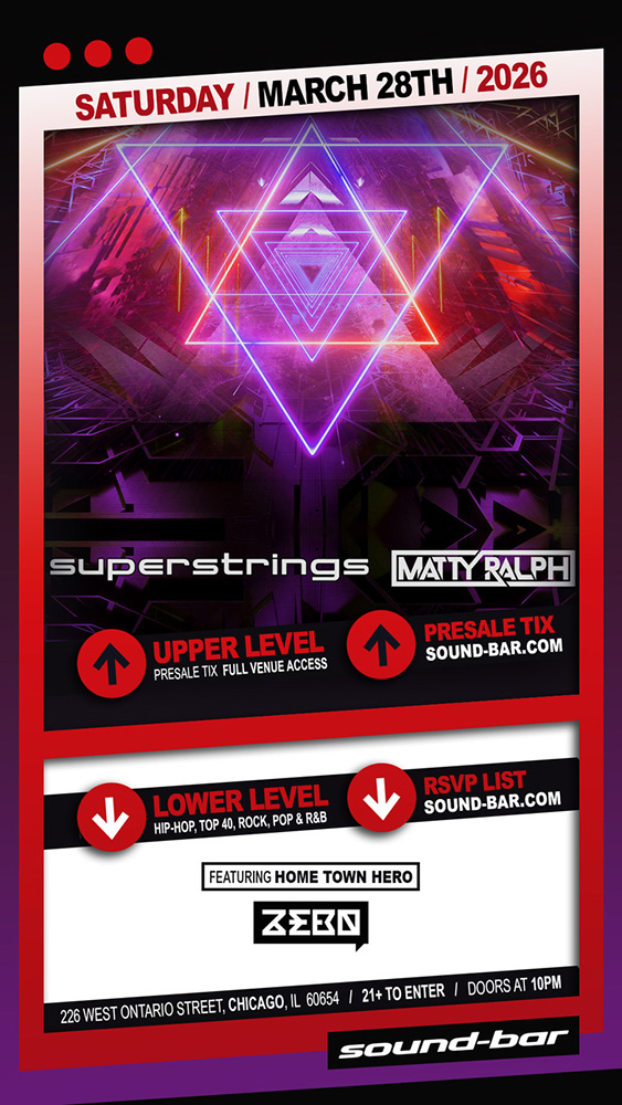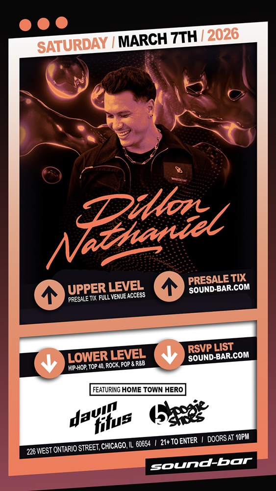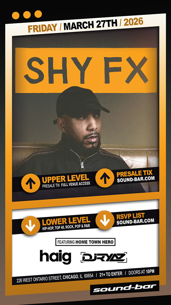 Sound-Bar is the hottest, upscale nightclub that revolutionizes Chicago nightlife by boasting style, luxury and state-of-the-art technology. Showcasing 20,000 square feet of pure bliss, a European minimalist decor, along with flat screen monitors, laser lights and new sound components. And the event calendar is like no other, featuring the world’s top DJ talent all year long!